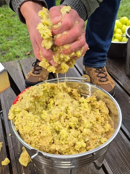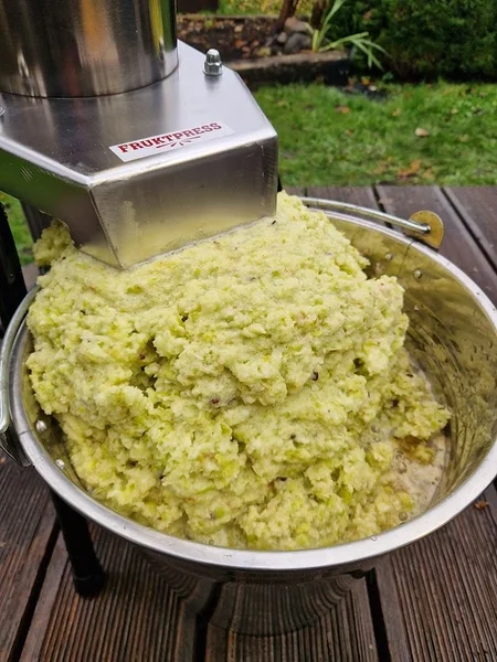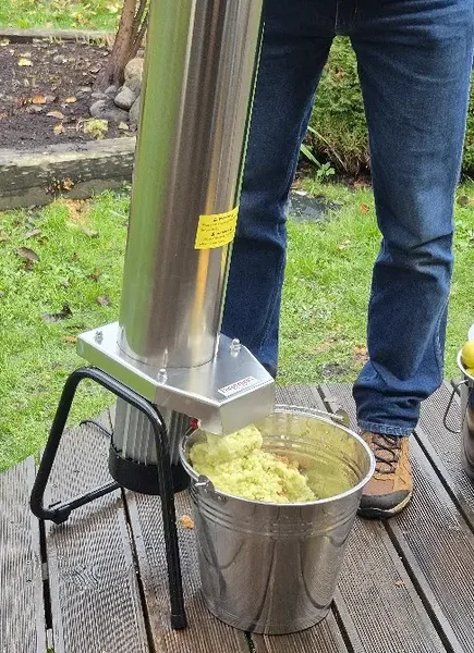 Äppelkrossen finfördelar äpplen till en lagom fruktmassa, vilket gör att mustutbytet ökar under pressningen.