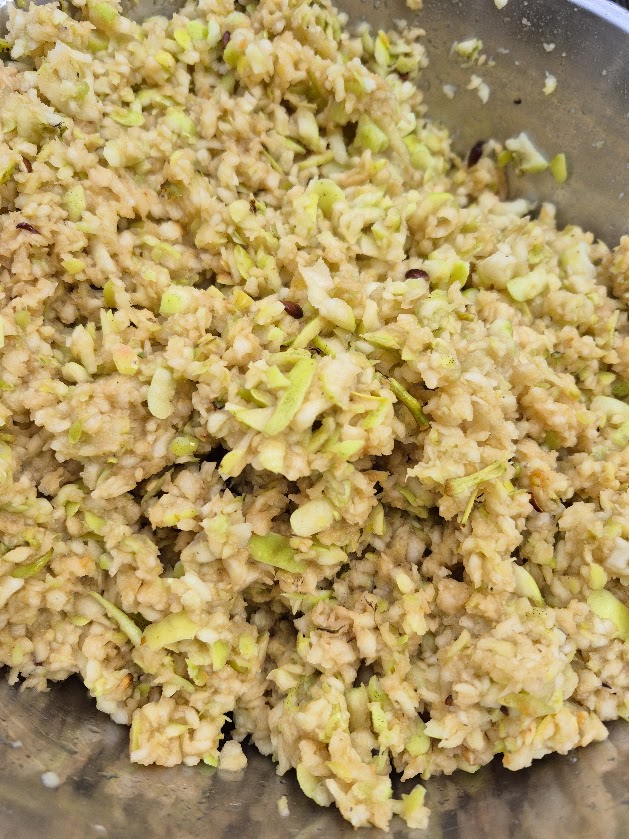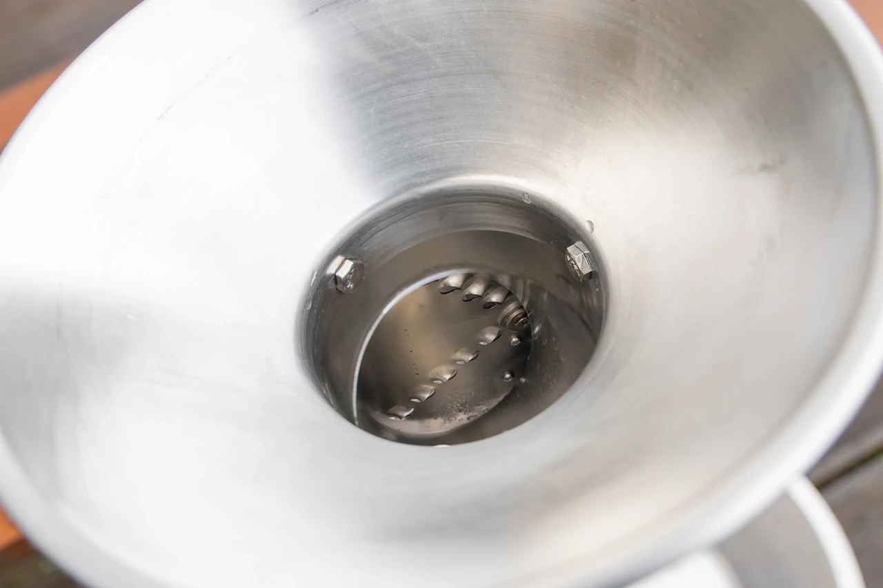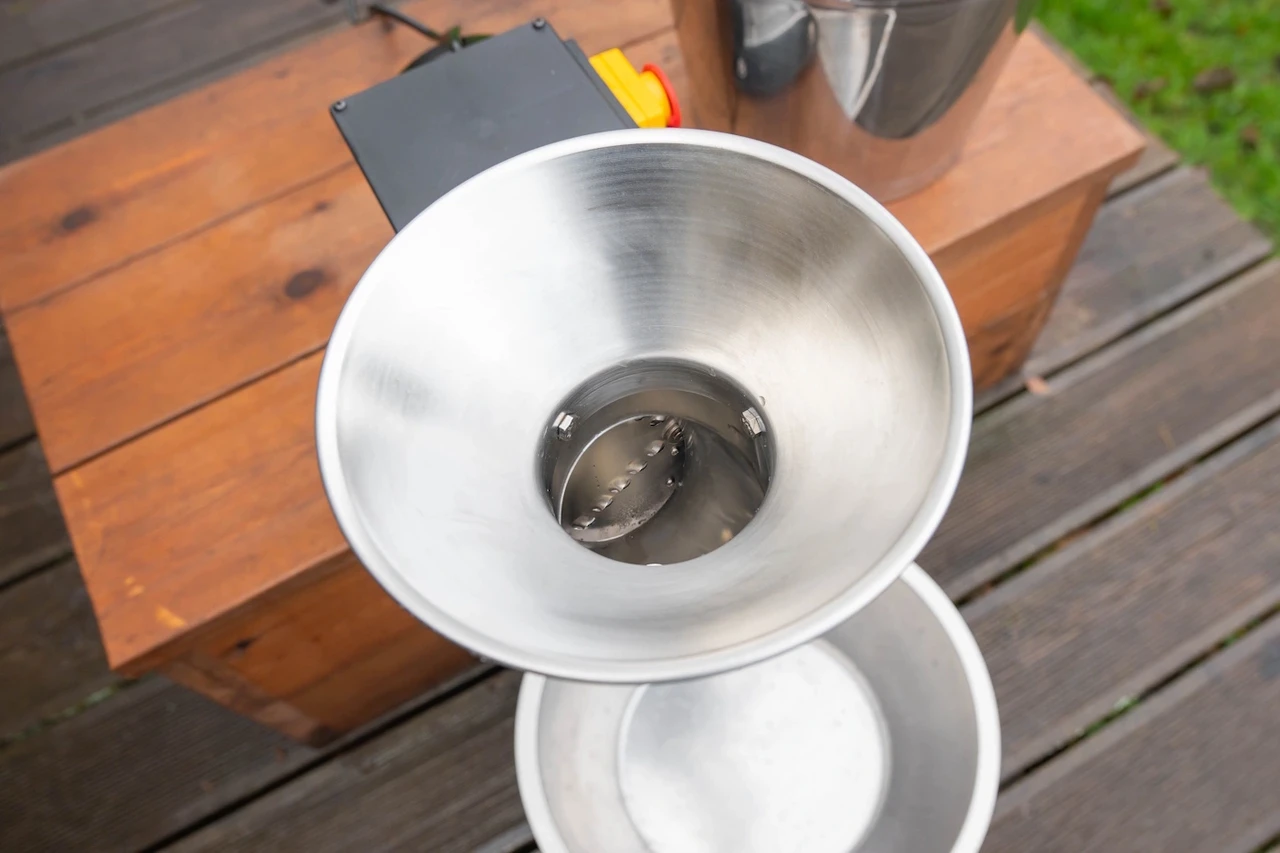 En av de största fördelarna med MiniCrush Pro är resultatet. Som du kan se på bilden blir fruktmassan varken för grov eller för fin, utan får en optimal konsistens för pressning. Detta säkerställer att du får ut mesta möjliga mängd must när du placerar massan i din fruktpress.