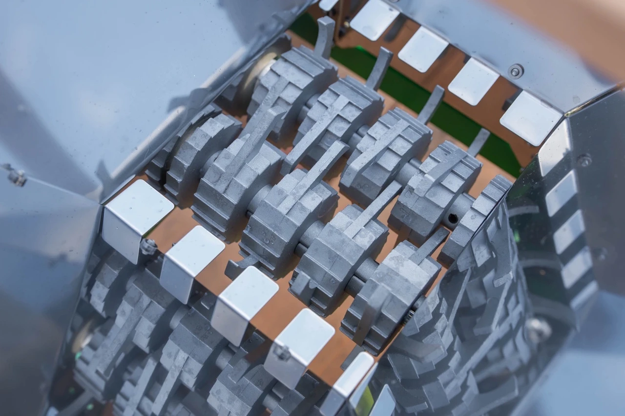 Efter varje användning ska krossen, särskilt valsarna och knivarna, rengöras med en borste och torkas ordentligt vilket förlänger deras livslängd.