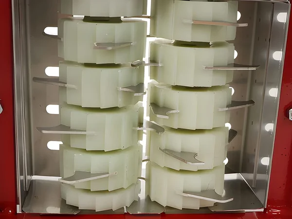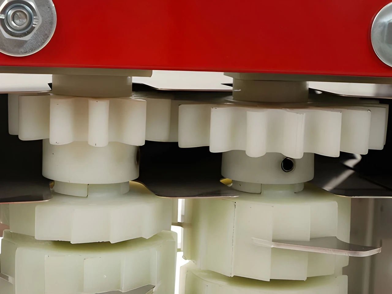 De rostfria knivarna och valsarna av nylon garanterar bästa livsmedelshygien och hållbarhet.