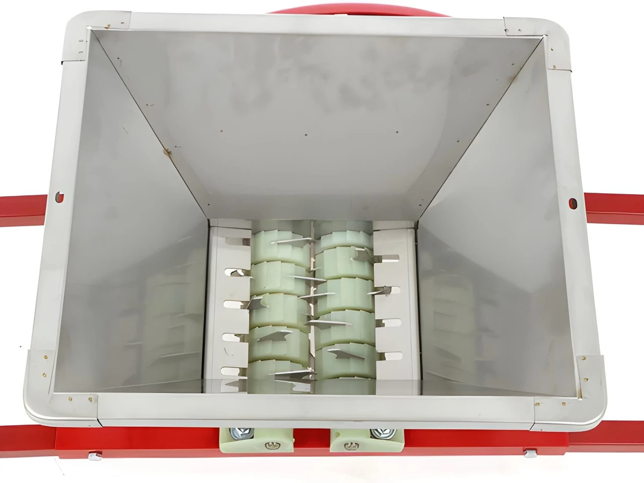 Efter varje användning ska krossen, särskilt valsarna och knivarna, rengöras med en borste och torkas ordentligt vilket förlänger deras livslängd.