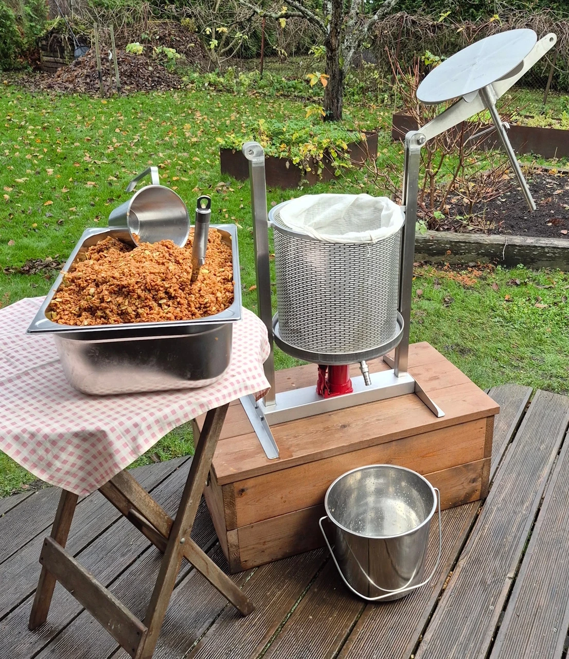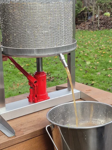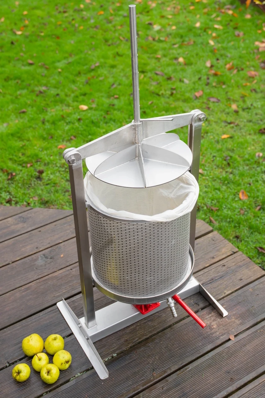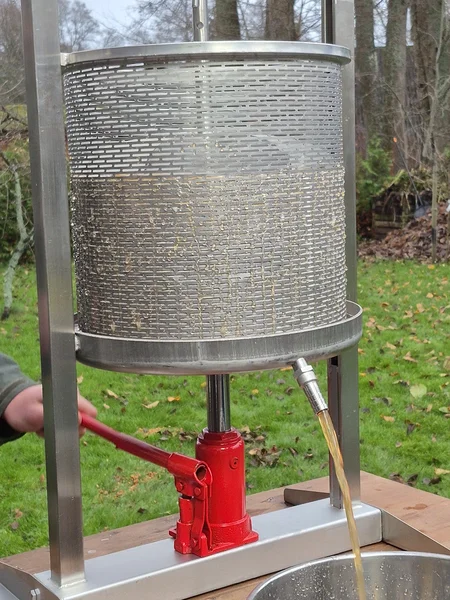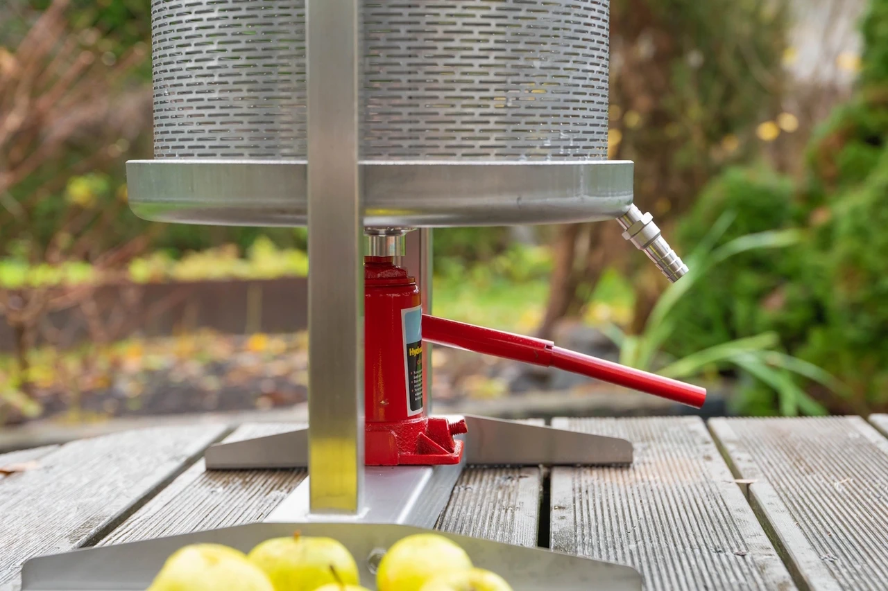 Hydraulisk fruktpress 30 l - av rostfritt stål och med 2-tons domkraft