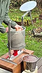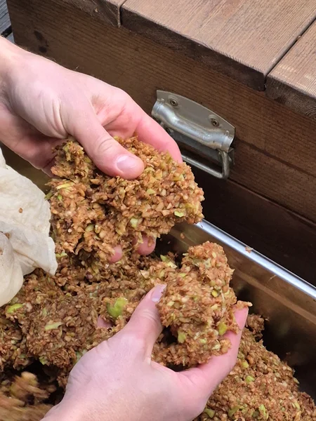 Fyllning: Fyll korgen med krossad frukt. För bästa resultat rekommenderar vi att använda vår Elektrisk fruktkross Hobby 1100.