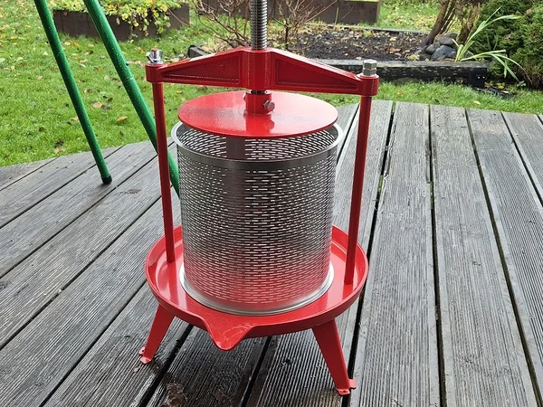 Fruktpress Hobby 14L med korg av rostfritt stål är hygienisk, lätt att använda och underhålla.