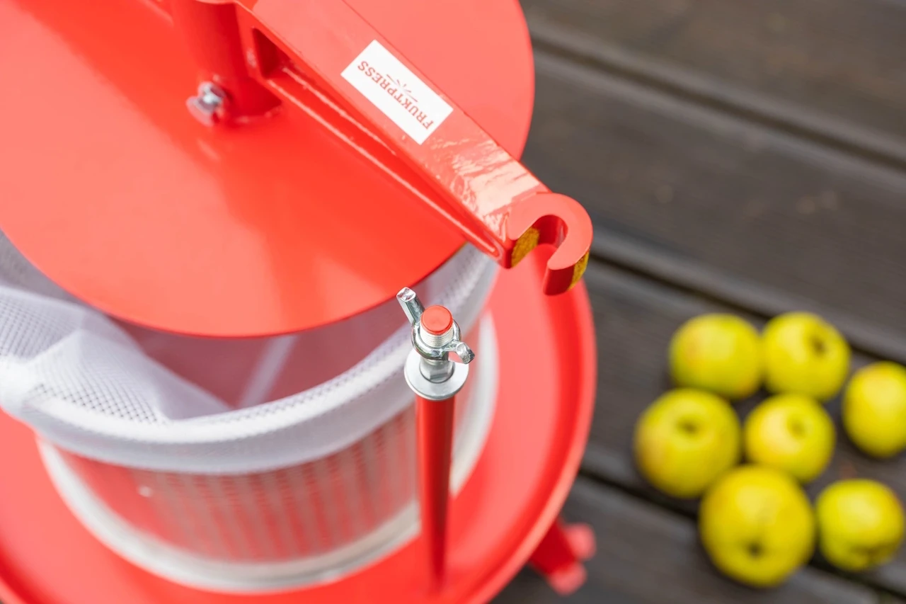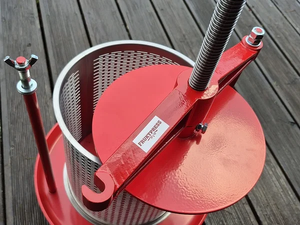 Fruktpressen har en rostfri stålkorg och en robust, pulverlackerad stålram, vilket gör mustframställningen både enkel och smidig. Tack vare de syrabeständiga materialen bibehålls fruktens naturliga smak utan oönskade bismaker eller lukter.