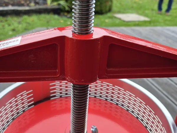 Den slitstarka trapesgängade skruven och den ergonomiska veven ger jämn och stabil pressning, vilket gör mustutvinningen enkel och bekväm med minimal ansträngning.
