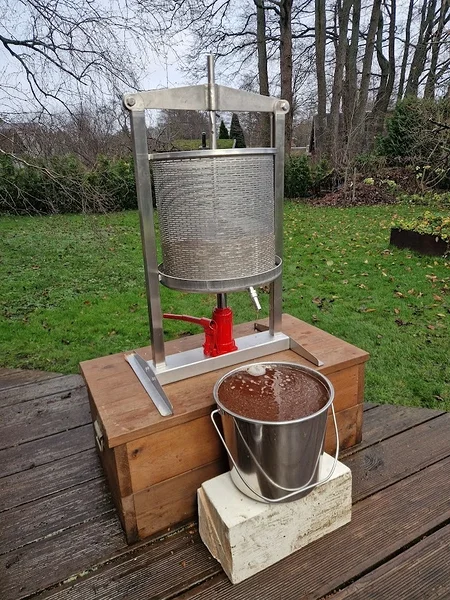 Använd livsmedelsgodkända hinkar för att samla upp musten under pressen. Det allra bästa resultatet får du om du använder rostfria kärl eller hinkar av hög kvalitet. Rostfritt stål är inte bara mer hållbart, det är också mest hygieniskt och säkerställer att mustens naturliga smak bevaras helt ren utan påverkan från materialet.