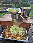 Efter pressningen har du kvar torra fruktmassans rester. Detta är fantastiskt organiskt material! Se till att ha en kompost i närheten eller kolla om en lokal bonde vill använda det som djurfoder.