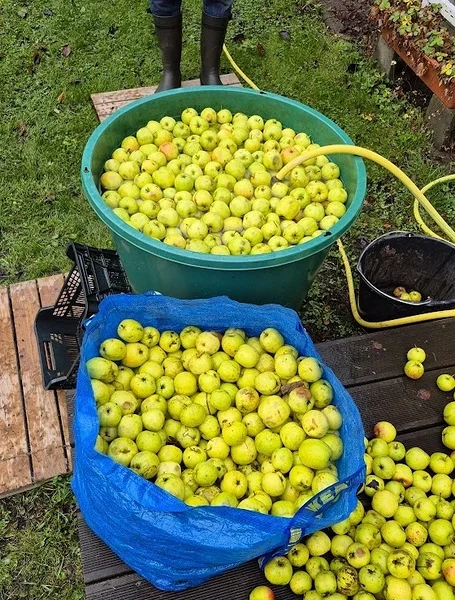Hur ska du tvätta? Ett stort kar, en ren skottkärra eller stora baljor fungerar utmärkt för att blötlägga och skölja äpplena innan de går vidare till krossen.
